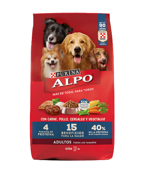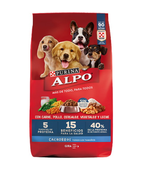 Cuidadosamente formulado con TODO lo que tu perro necesita y NADA de lo que NO. Alpo Cachorro Cuidadosamente formulado como un alimento 100% completo y balanceado VER MÁS Alpo Adulto Cuidadosamente formulado como un alimento 100% completo y balanceado VER MÁS VER MÁS Con más de 90 años nutriendo mascotas, nuestros expertos y nutricionistas desarrollan recetas exclusivas adaptadas para tu perro y todos los perros, pasando por un riguroso control de calidad.